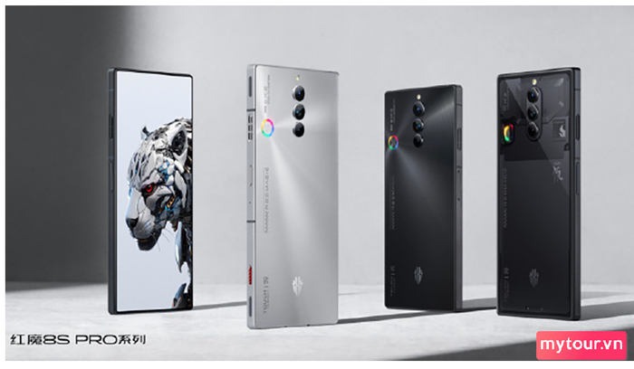 Dòng điện thoại Red Magic 8S Pro series mang đến nhiều lựa chọn màu sắc như đen, bạc và phiên bản có mặt lưng trong suốt. Tất cả được kết hợp với quạt tản nhiệt RGB lôi cuốn, hệ thống 3 camera sau với cảm biến chính 50MP, ống kính góc siêu rộng 8MP và camera macro 2MP.