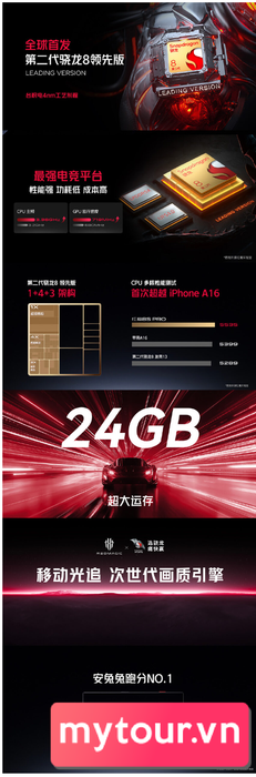 Điểm đặc biệt của dòng Red Magic 8S Pro series đến từ cấu hình bên trong, là smartphone đầu tiên trên thế giới sử dụng chipset Snapdragon 8 Gen 2 Leading Version với tốc độ lên tới 3.36 GHz. GPU Adreno 740 cũng được nâng cấp, từ 680 MHz lên 719 MHz để tăng cường hiệu suất. Mẫu 8S Pro+ còn đi kèm với RAM LPDDR5X 24GB và bộ nhớ trong 1TB.