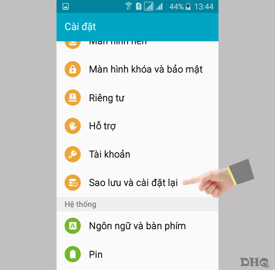 Step 2: Select Backup and Reset.