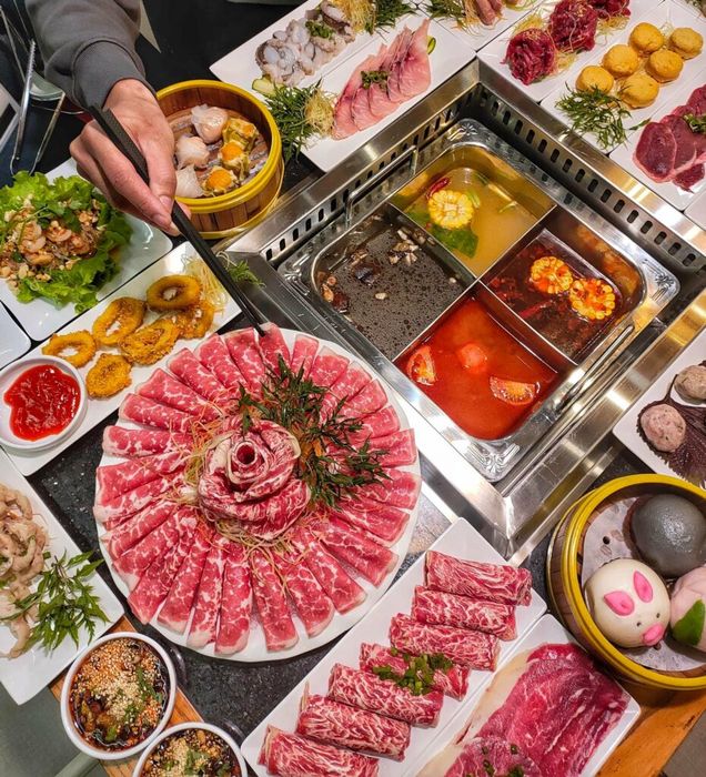 Glancing at the menu of this delicious hotpot buffet in Ho Chi Minh City will leave you stunned with over 100 dishes. A top-notch hotpot feast with a variety of premium dipping items from meat, vegetables, seafood. Highlighting some prominent names: premium Wagyu beef, Kurobuta pork, lamb, pigeon, abalone, octopus, sea cucumber,... And of course, not to mention the various dim sum dishes.