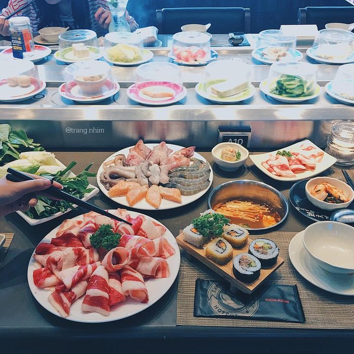 Kichi Kichi is a famous hotpot buffet restaurant chain in Vietnam. This renowned buffet hotpot chain in HCMC has branches in all districts of Ho Chi Minh City. The hotpot is served in a unique, modern conveyor belt format, combined with attentive and courteous service style from Japan, creating a positive impression for diners at the restaurant.