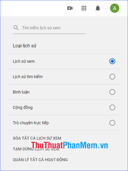Delete or temporarily pause the recording of your watched video history on YouTube