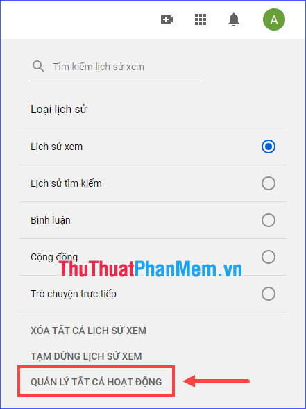 Apart from your watched video history, you can also browse through search history, comment history, or direct message history.