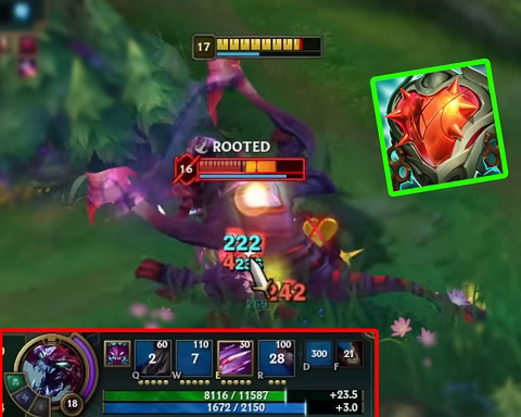 Trong giai đoạn Tiền Mùa Giải 2023, Riot đã giới thiệu Trái Tim Khổng Thần - một trang bị Thần Thoại có giá 3200 vàng. Nó không chỉ mang lại 800 máu và hồi 200% máu cơ bản, mà còn cung cấp 20 điểm hồi kỹ năng và sát thương cho tướng sử dụng.