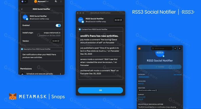 Chức năng Social Notifier Snap: Chức năng Social Notifier Snap tích hợp nhiều nền tảng xã hội phi tập trung như Lens và Farcaster trực tiếp vào giao diện MetaMask.