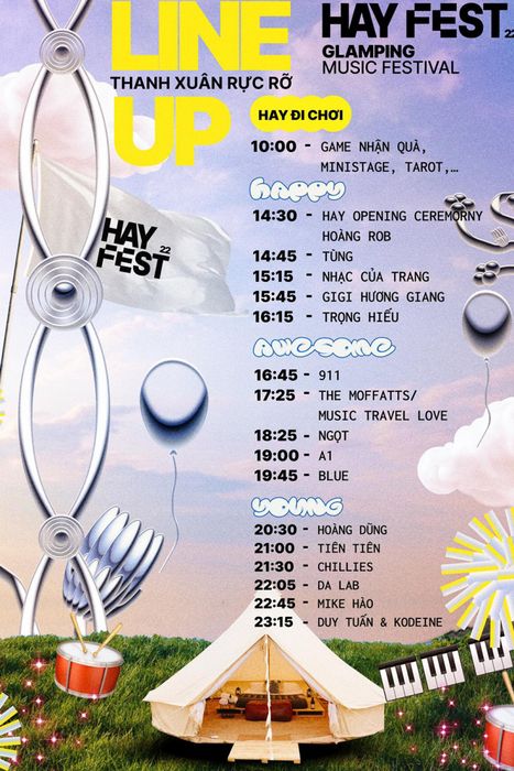 Hãy đồng hành cùng HAY Glamping Music Festival trong mùa hè này, để trải nghiệm những giai điệu sôi động, thấu hiểu nổi lòng nồng cháy của tuổi trẻ!