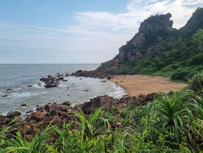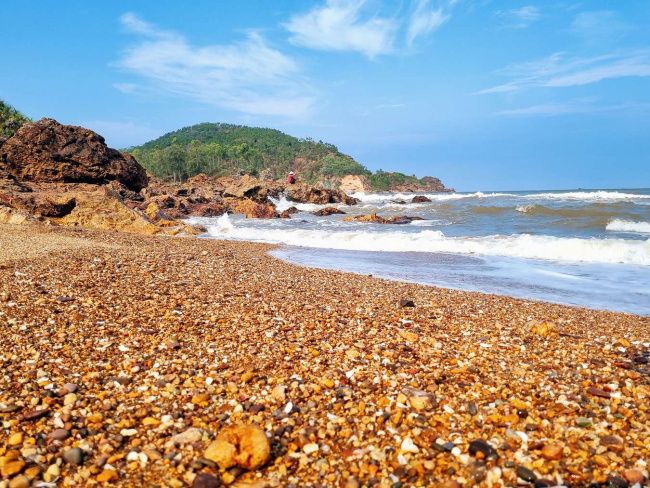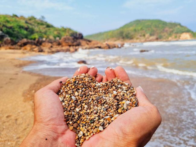 Bãi tắm nhỏ xinh với đặc điểm độc đáo - cát thay thế bằng sịn/sạnh, một loại vật liệu được người dân địa phương sử dụng trong xây dựng.