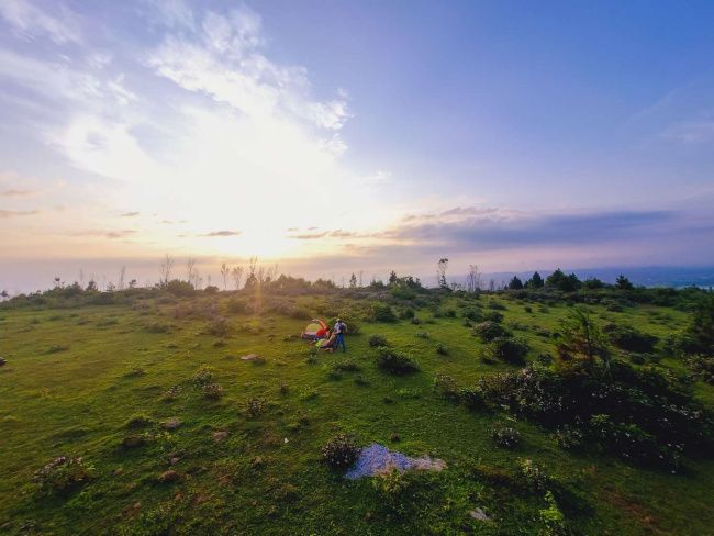 Ở đỉnh cao nhất, thảo nguyên rộng lớn chờ đón bạn, với độ dốc thoải, mặt đất bằng phẳng và cỏ dày. Gốc thông là điểm lý tưởng để tránh gió khi cắm trại qua đêm. Hình dung mở cửa lều, trước mắt là biển cả, sau lưng là rừng thông. Một trải nghiệm thư giãn tuyệt vời!