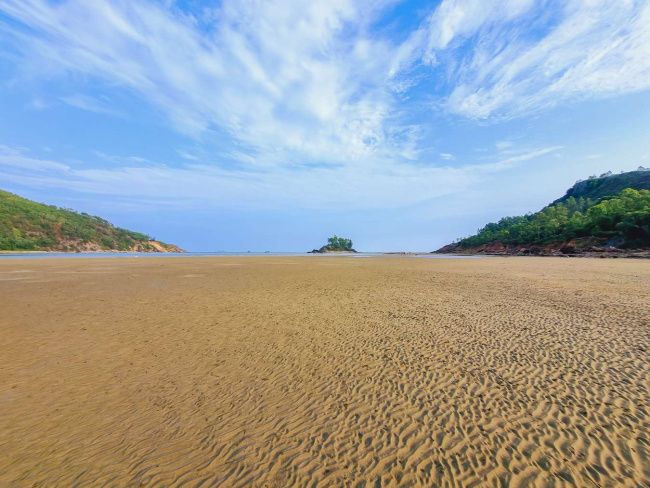 “Con Chó” tận hưởng sự yên bình khi được bao quanh bởi nước biển, nhưng khi thủy triều rút, bãi cát mịn mở ra, tạo điều kiện thuận lợi cho việc khám phá cùng người dân địa phương.