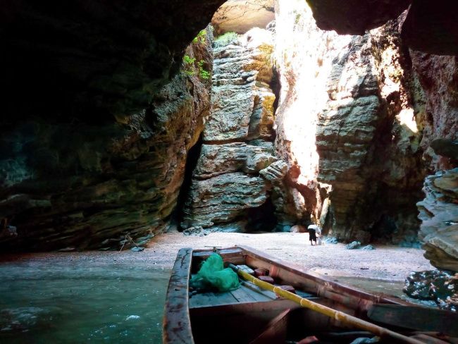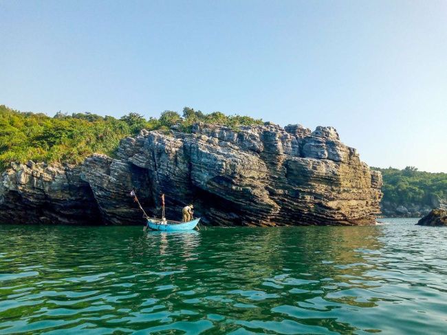 Nằm đối diện Mũi Trâu, “Con Chó” là điểm đến độc đáo, để tiếp cận nhanh chóng, hãy sử dụng dịch vụ đò và hỏi người dân địa phương về chỗ thuê đò.