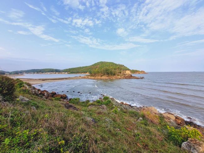 Khám phá đường đi ra Mũi Trâu khi thủy triều rút, tận hưởng không khí huyền bí và tĩnh lặng.