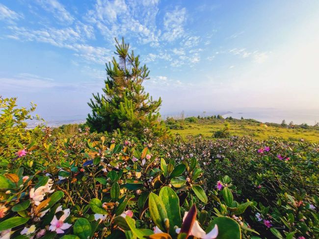 Trên đỉnh núi Rồng, vào mùa hoa sim, bạn sẽ bắt gặp biển hoa sim bát ngát. Mọi góc nhìn đều là cơ hội để thư giãn, với sim và thông bên cạnh, tạo nên bức tranh tuyệt vời. Nhớ chụp ảnh vào những ngày nắng rực rỡ để hoa sim tím hiện lên rực rỡ nhất.