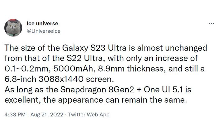 - - Thiết kế của Galaxy S23 Ultra có thể không quan trọng, nâng cấp có thể đến từ camera, Snapdragon 8 Gen 2 và giao diện One UI 5.1.