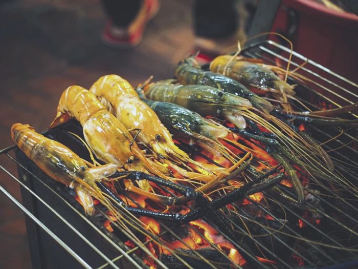 Hải sản tại Làng bè Long Sơn không chỉ tươi ngon, khỏe mạnh mà còn có hương vị đặc biệt, thơm ngon hơn so với nơi khác, có lẽ nhờ vào điều kiện tự nhiên thuận lợi. Hải sản được chế biến theo nhiều cách như nướng, hấp sả, tái chanh, tái mù tạt, sốt me... Những món ngon ở Vũng Tàu tại Làng bè Long Sơn rất đa dạng, nhưng hãy ưu tiên thưởng thức hàu, sò huyết và các loại cá nhé.