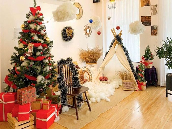 Không gian quán được bày trí với background Noel cực kỳ xịn xò, là điểm sống ảo cho những bức hình cực chất.