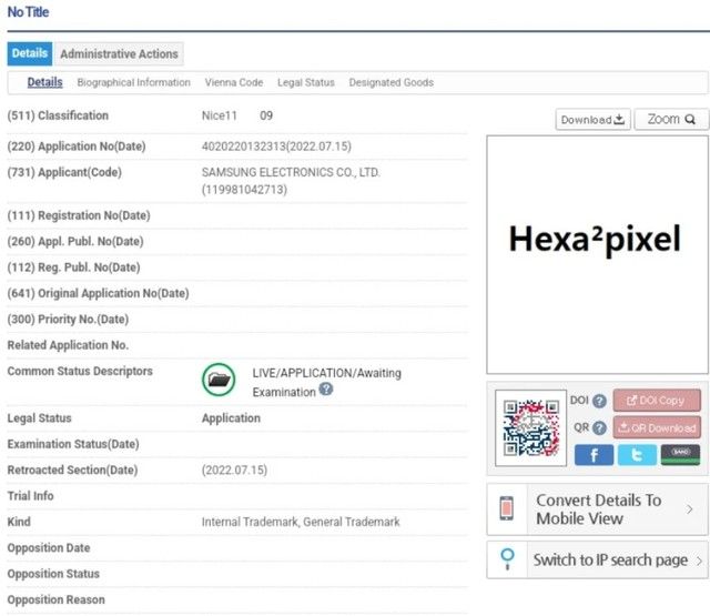 Samsung đăng ký nhãn hiệu 'Hexa²Pixel' là cần thiết vì đang nghiên cứu cảm biến máy ảnh với tỷ lệ ghép pixel là 36:1.