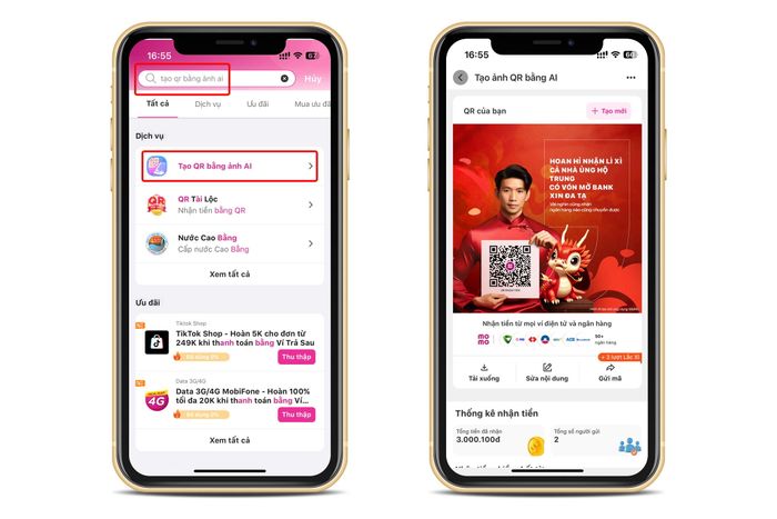 Sau khi giới thiệu Mã QR Nhận Tiền Đa Dạng, MoMo mở rộng tính năng 'Tạo QR bằng ảnh AI', mang đến trải nghiệm nhận lì xì một cách độc đáo trong dịp Tết. Người dùng MoMo có thể tận hưởng việc sáng tạo và cá nhân hóa Mã QR lì xì từ chính bức ảnh chân dung của mình, đồng thời tuỳ chỉnh tên và thông điệp, tạo ra niềm vui chia sẻ mong ước năm mới trên mạng xã hội. Điều này thu hút sự quan tâm và ủng hộ từ bạn bè thông qua lì xì hoặc tương tác với nội dung được chia sẻ.