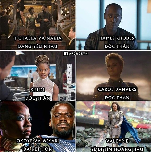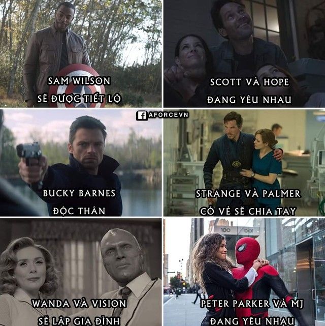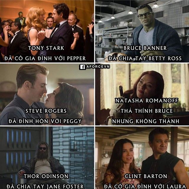 Dưới đây là tình trạng tình cảm của các siêu anh hùng và nhân vật trong MCU: