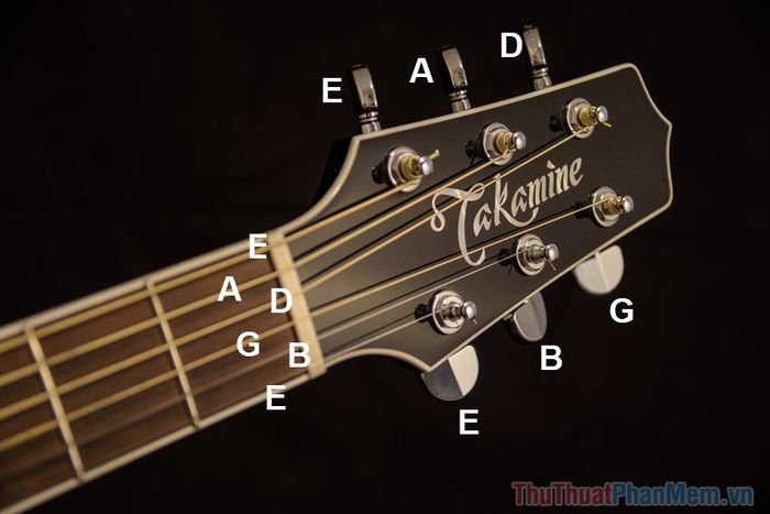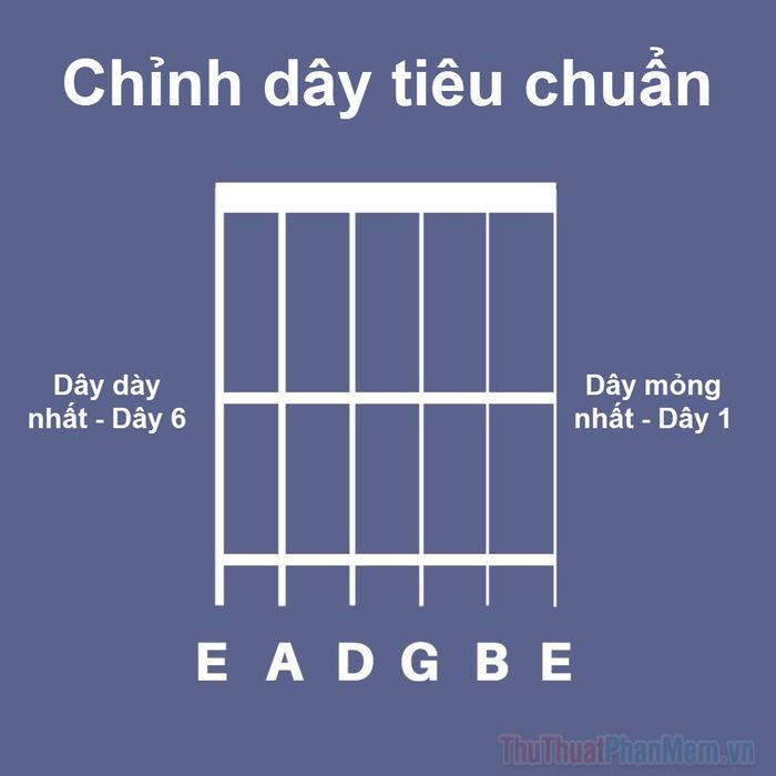 The standard notes for tuning a guitar's six strings from thickest to thinnest are E, A, D, G, B, and E. A helpful mnemonic to remember this order is 'Elephants And Donkeys Grow Big Ears.'