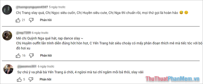 Trên Youtube, Tik Tok, ta thường bắt gặp từ “Slay” trong những bình luận của người xem. Đó là cách họ thể hiện sự hâm mộ, say mê với các nghệ sĩ trong các video. “Slay” là biểu hiện của sự đam mê của người xem đối với từng tiết mục.