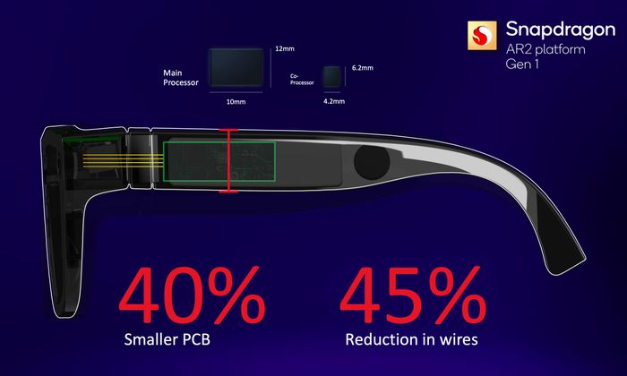 - AR co-processor tổng hợp dữ liệu từ camera và cảm biến, theo dõi mắt và tối ưu hóa hiển thị hình ảnh theo hướng mắt, giảm áp lực xử lý và tiêu thụ điện năng.