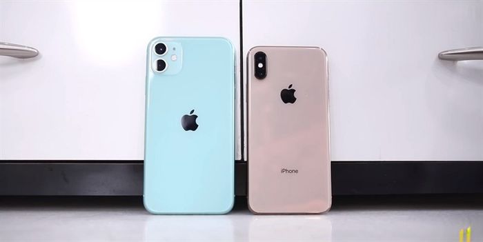 So sánh giữa iPhone 11 (bên trái) và iPhone Xs (bên phải). Nguồn: TecworkZ.Ngoài ra, khi nhìn vào phần mặt lưng, mặc dù cả hai đều trang bị camera kép, nhưng cụm camera của chúng có thiết kế khác nhau, đây có thể coi là một điểm để phân biệt giữa hai thế hệ iPhone.