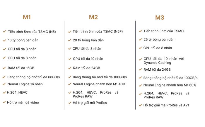 Anh em ơi, hãy đọc thông tin về dòng chip M3 series trong bài viết dưới đây nhé: