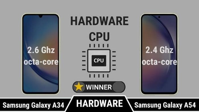 Vào Galaxy A54 có chip CPU mạnh mẽ hơn A34, với lõi CPU Mali-G615. Samsung Galaxy A54 và A34 đều có RAM 6/8GB và ROM 128/256GB hỗ trợ bộ nhớ tối đa.