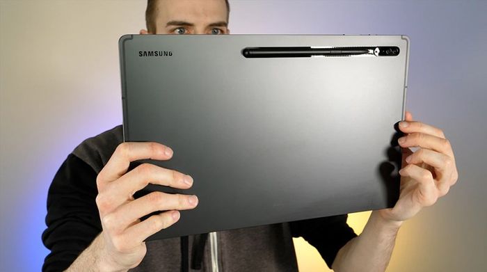 Samsung Galaxy Tab S8 Ultra, tablet xuất hiện trong năm 2022, nổi bật với vẻ ngoại hình nhôm nguyên khối sang trọng. Mặt lưng được chế tạo với chất liệu nhám, kết hợp với màn hình Super AMOLED vô cùng lớn, kích thước 14.6 inch, mang đến trải nghiệm màu sắc tuyệt vời.