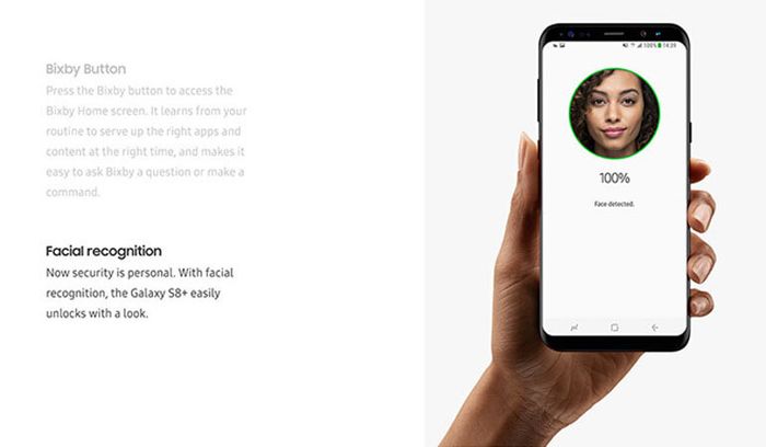 – Trên Samsung Galaxy Note 8 và S8/ S8 Plus: nhận diện khuôn mặt dựa vào máy ảnh và máy quét mống mắt.