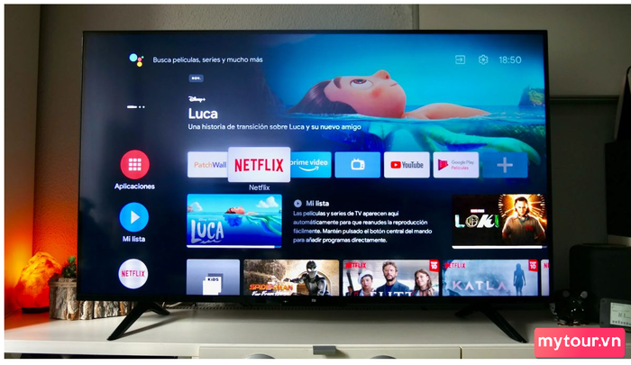 - Tivi Xiaomi sử dụng hệ điều hành Android TV, tích hợp nhiều tiện ích như chiếu màn hình điện thoại, tìm kiếm bằng giọng nói, điều khiển tivi qua điện thoại, tương tác với trợ lý ảo.