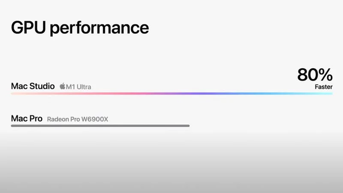 Hiệu suất của SoC M1 Ultra về CPU và GPU so với AMD Radeon Pro W6900XThông tin về cấu trúc của SoC M1 Ultra và so sánh với CPU và GPU trong Mac Pro trước đây