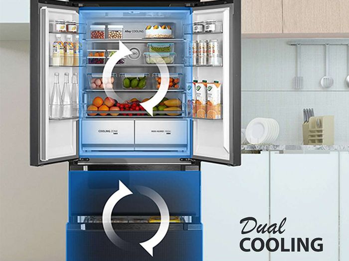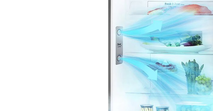 Tính năng DoorCooling+™: Với DoorCooling+™, thực phẩm được làm lạnh đồng đều và nhanh chóng hơn, giữ đồ uống lạnh mát và thực phẩm tươi ngon hơn.