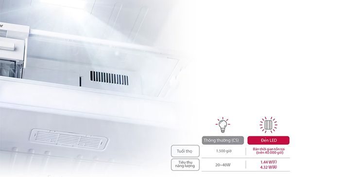 Ánh sáng LED tiết kiệm năng lượng: Đèn LED trên tủ lạnh LG không chỉ giúp tiết kiệm năng lượng mà còn tăng tuổi thọ so với đèn thông thường.