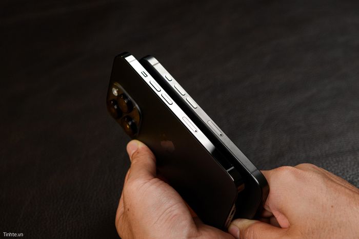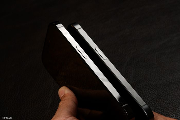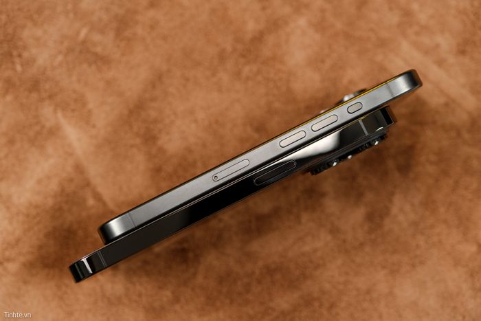 Cạnh bên trái, nút rung/chuông đã được thay đổi thành nút tác vụ. Bề mặt bóng của thép phản chiếu ánh sáng nên luôn tỏa sáng và lộng lẫy hơn so với bề mặt nhám của titanium.