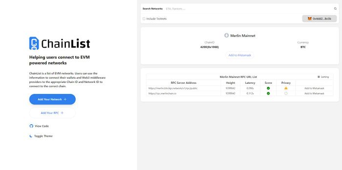 - Bước 1: Thêm mạng Merlin vào ví MetaMask