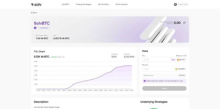 Solv Finance là một giao thức yield trên Merlin Chain, cho phép người dùng sử dụng BTC của họ để tăng lợi nhuận qua staking và cung cấp thanh khoản. Solv Finance đóng vai trò như một cổng thanh khoản thống nhất, giảm thiểu các rào cản và chi phí cho người dùng đang tìm cách tiếp cận các cơ hội đầu tư chất lượng.