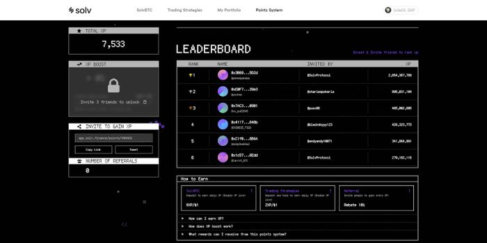 - Tại đây, bạn có thể kiểm tra số XP bạn đã kiếm được. Mỗi ngày, với mỗi 1 USD SolvBTC bạn nắm giữ, bạn sẽ nhận được 8 XP