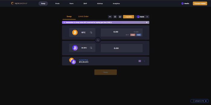 - Truy cập MerlinSwap: https://merlinswap.org/trade/swap