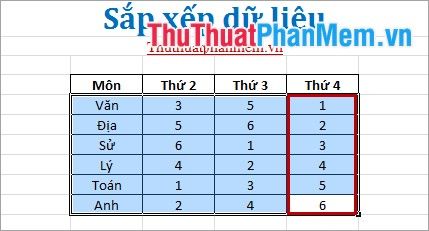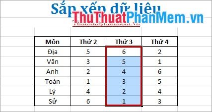 + If you choose Sort Largest to Smallest, the result after sorting will be: