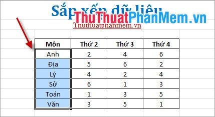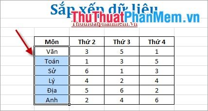 + If you choose Sort A to Z, the data will be sorted as follows: