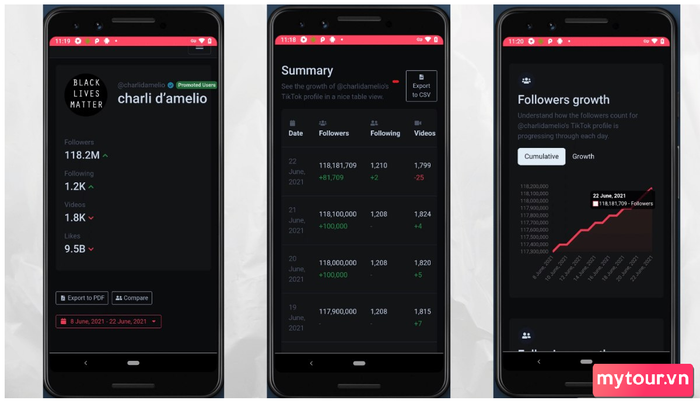 - - Tiktok Counter tương thích tốt với các thiết bị Android, cung cấp tính năng so sánh người dùng và tích hợp với TikStats để phân tích sâu hơn.