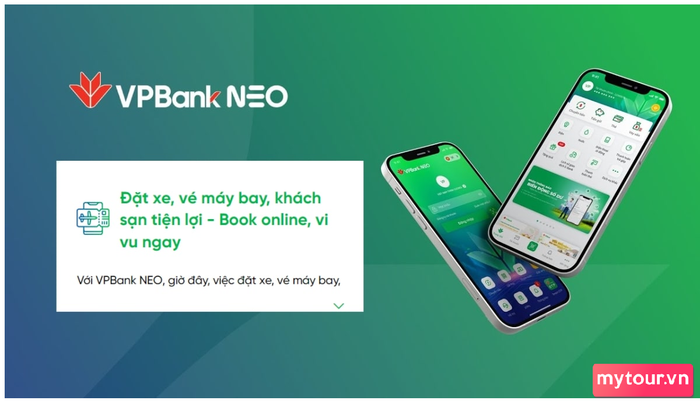Đây là tính năng độc đáo trên nền tảng ngân hàng số VPBank NEO. Với ứng dụng, bạn có thể dễ dàng đặt xe, vé máy bay và đặt phòng khách sạn một cách nhanh chóng mà không cần sử dụng các ứng dụng khác.