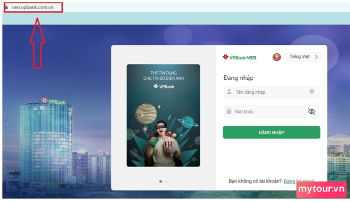 Bước 1: Truy cập trang web chính thức của VPBank (https://neo.vpbank.com.vn/).