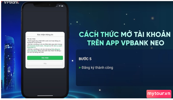 Bước 7: Xác nhận thông tin để hoàn tất quá trình đăng ký tài khoản VPBank NEO.