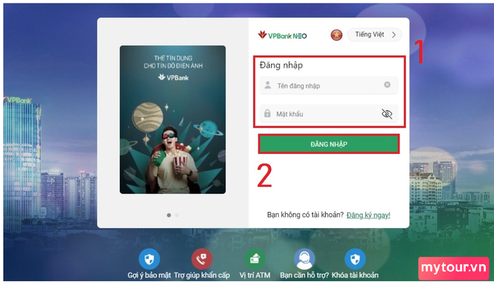 Bước 2: Đăng nhập vào tài khoản với Tên đăng nhập và Mật khẩu > nhấp vào “Đăng nhập” > truy cập tài khoản và sử dụng ngay các tiện ích.