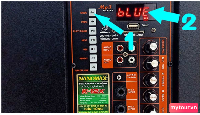 Đồng thời bật chức năng kết nối qua Bluetooth trên loa kéo, thường là nút “MODE”. Bạn chỉ cần bật nút này, khi đèn Bluetooth sáng lên, bạn có thể sử dụng laptop để tìm và kết nối Bluetooth giữa loa và laptop.