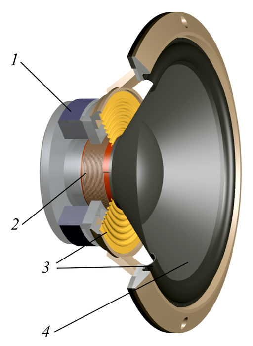 Speakers are fundamentally made of four components, a magnet (1), a coiled wire (2), a spring or suspension (3) and a diaphragm (4). Svjo/WkimediaCommons,Tai nghe hoạt động như thế nào?