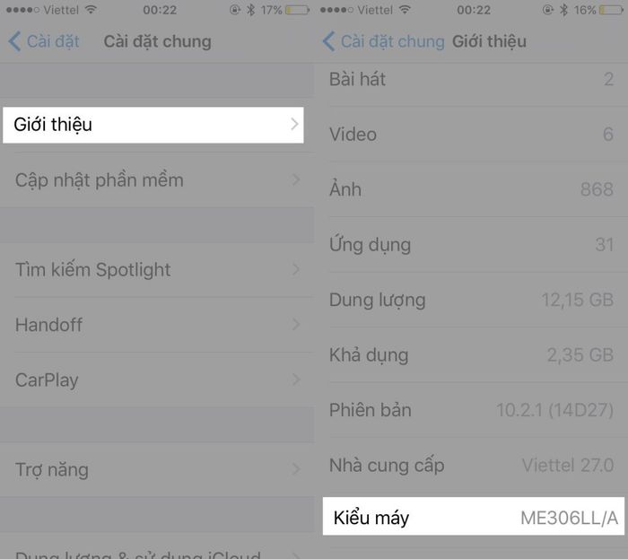 - Cách 2: Vào Cài đặt > Cài đặt chung > chọn Giới thiệu, và bạn sẽ tìm thấy thông tin số IMEI của thiết bị.