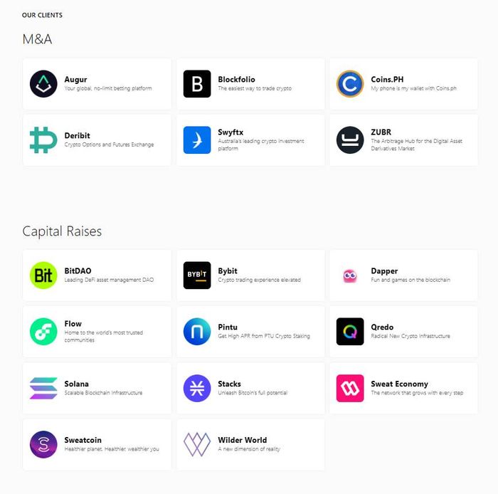 Khách hàng của Spartan AdvisorySpartan Capital (Quản lý tài sản và đầu tư): Spartan Capital là một phần của Spartan Group và tập trung vào đầu tư vào thị trường tiền mã hóa ở cả mức thị trường sơ cấp và thứ cấp.